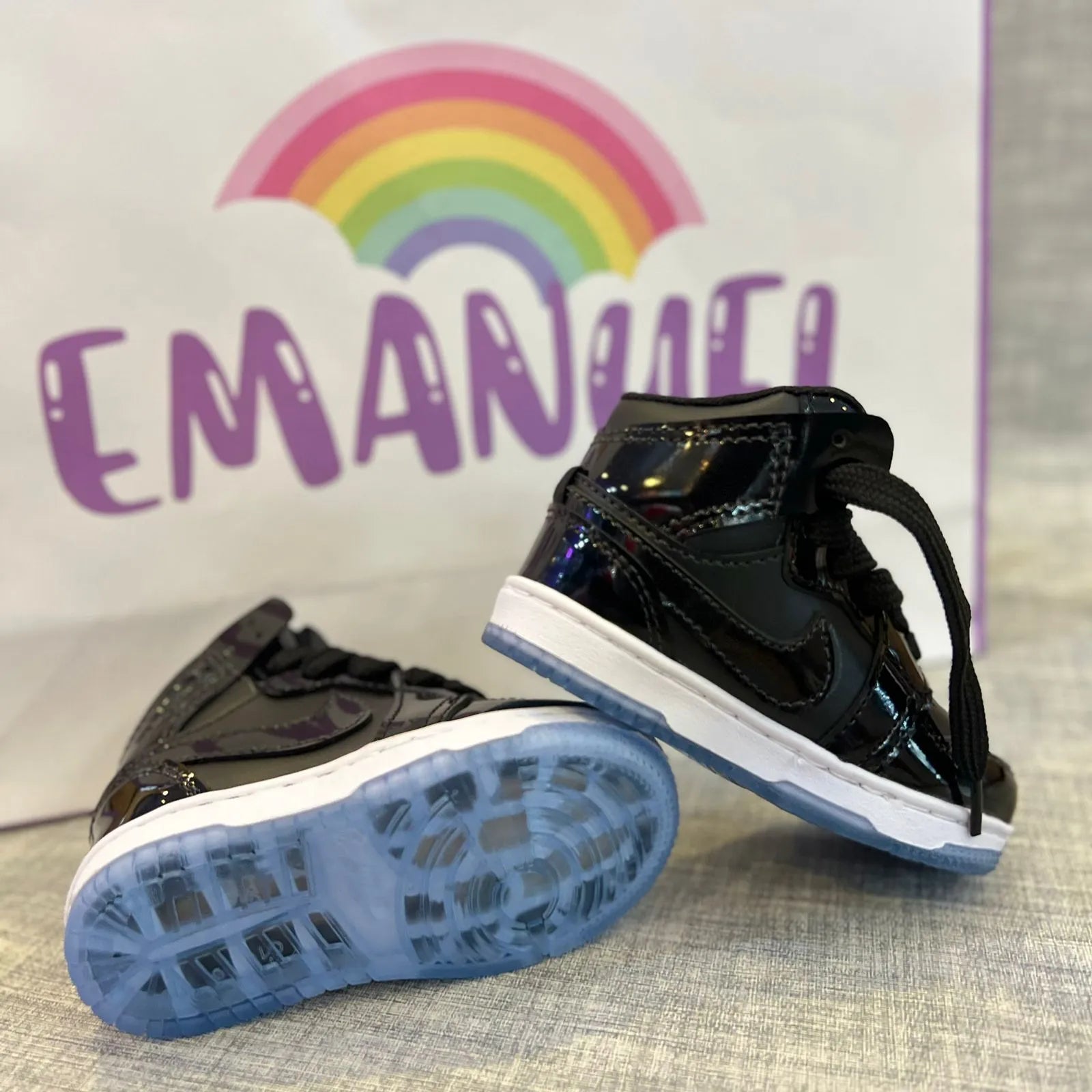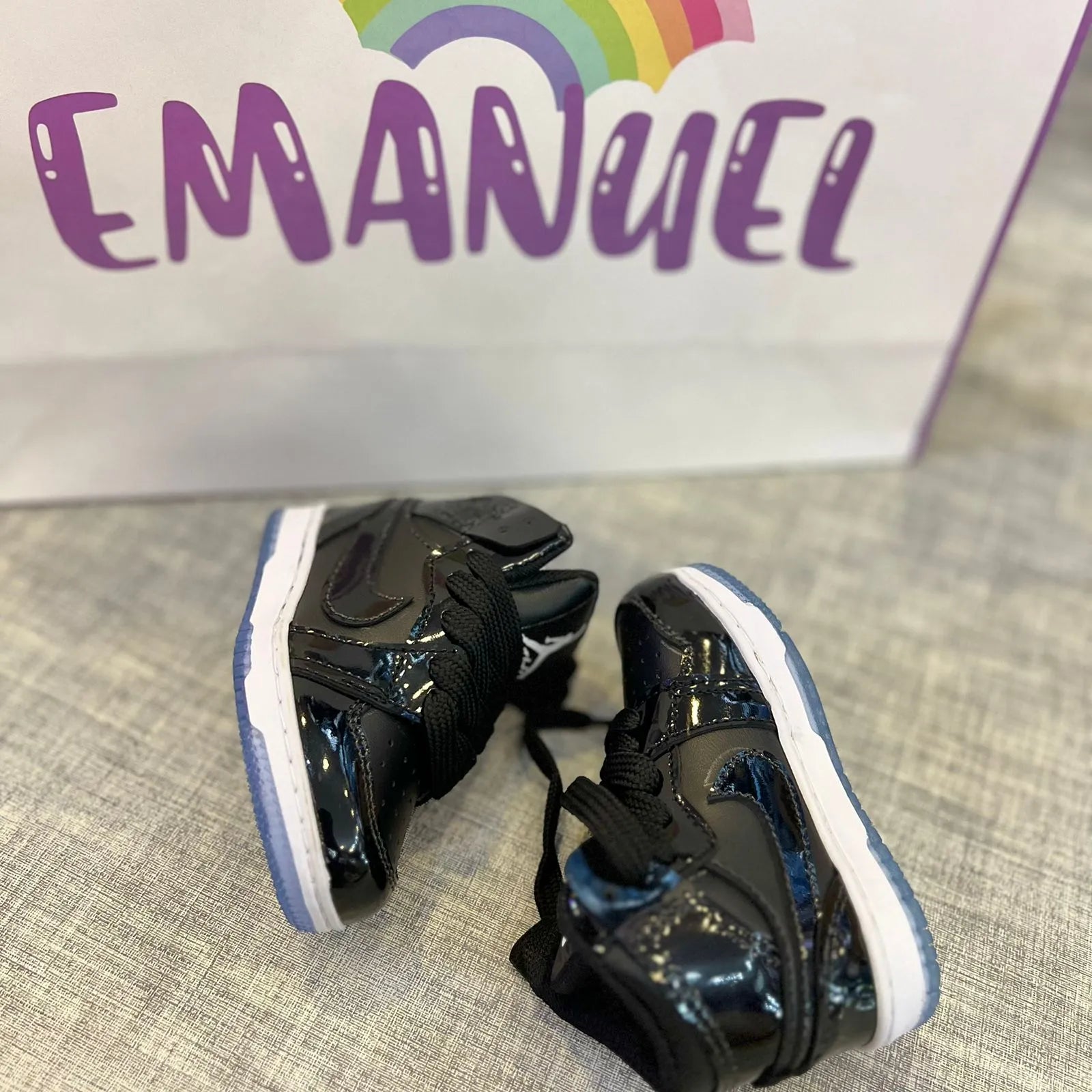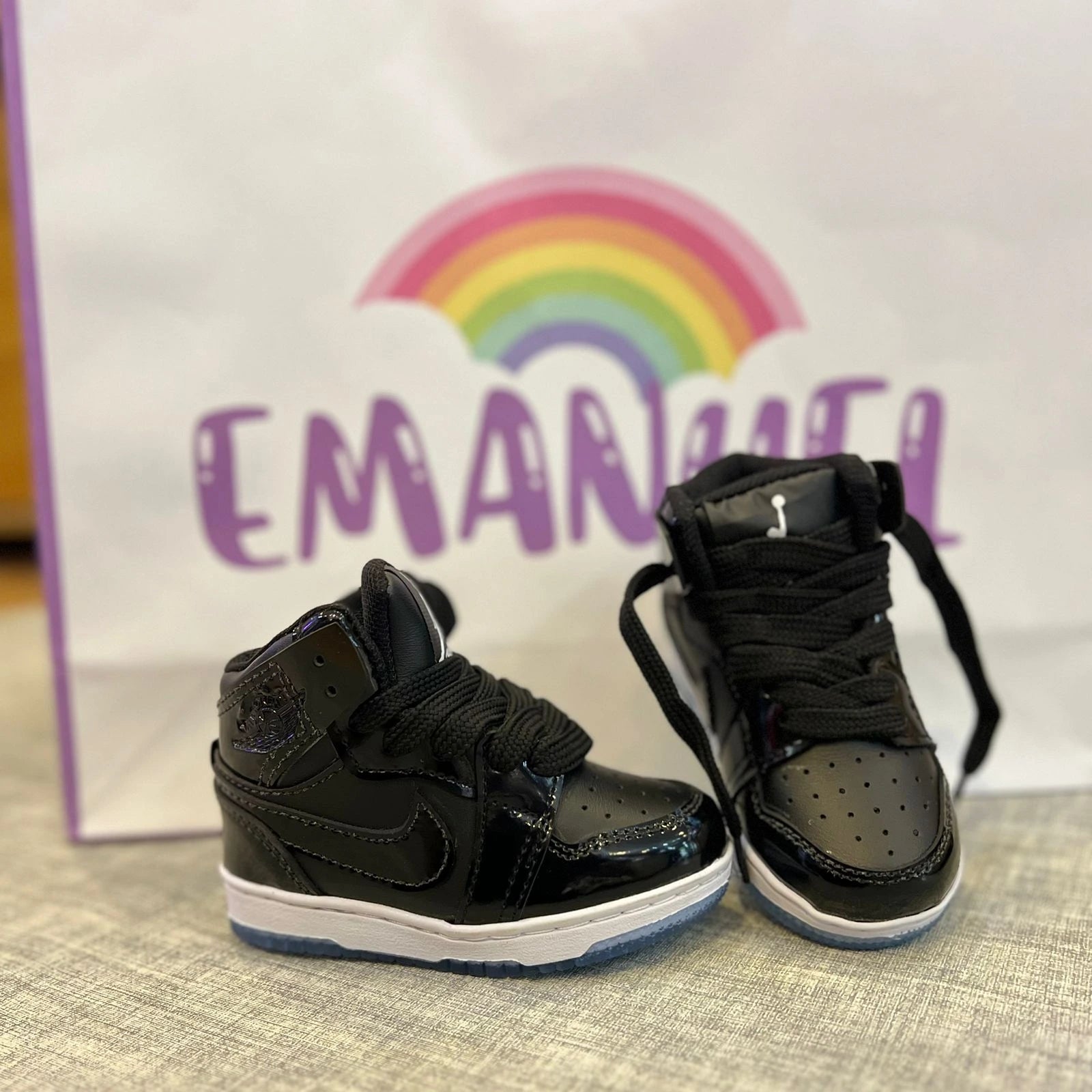 ¡El estilo legendario de Jordan ahora también para los más pequeños! Las Jordan 1 para bebé en charol negro combinan diseño icónico, materiales de alta calidad y total comodidad, ideales para darle a tu peque un look urbano y moderno desde sus primeros pasos. 😎