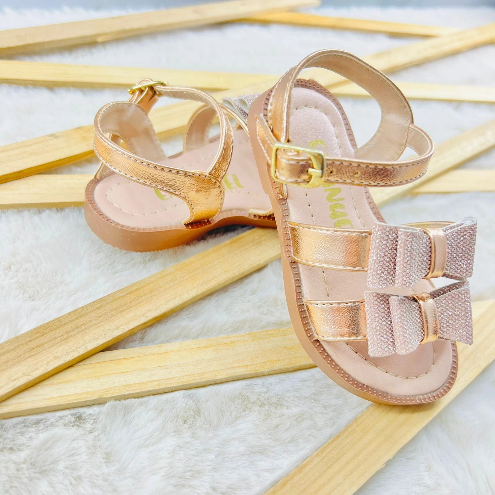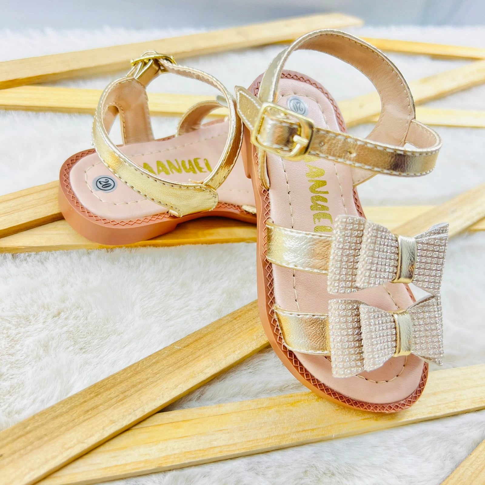 Las sandalias Ariel son puro brillo y dulzura. Su diseño con doble lazo frontal les da un toque coqueto y moderno, perfecto para las pequeñas fashionistas. Disponibles en oro rosa, champaña y plateado, son ideales para brillar en cualquier ocasión.
